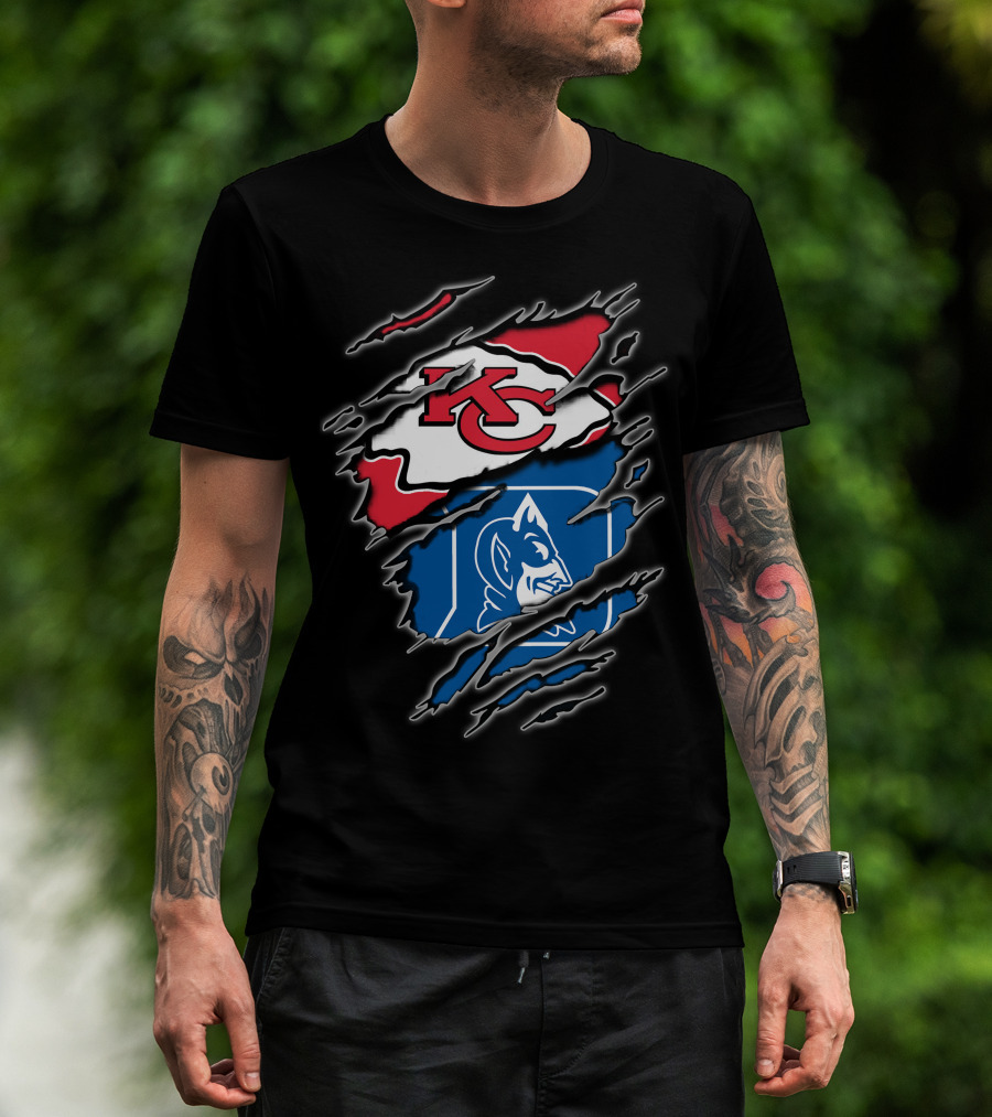 Kansas City Chiefs And Duke Blue Devils Logo Fusion T-Shirt