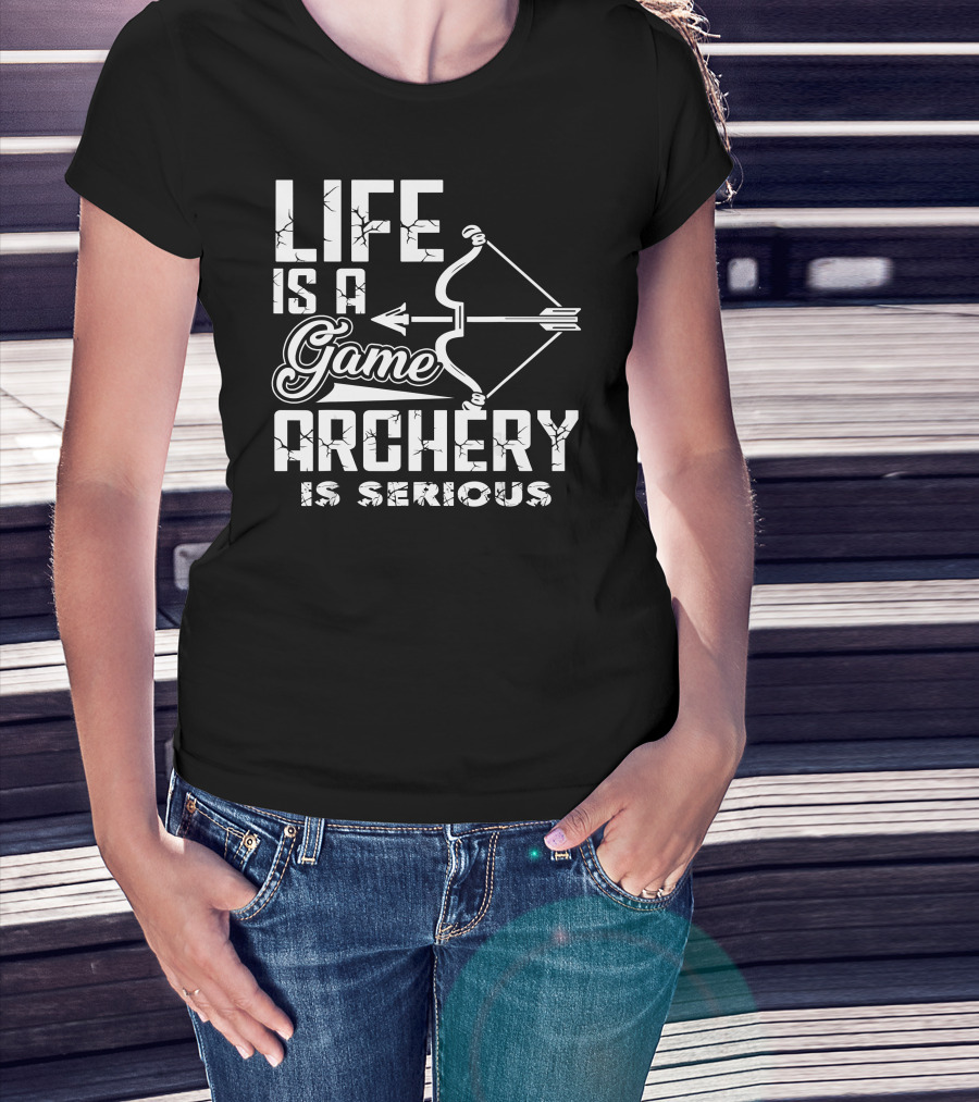 The Life Is a Game Archery Is Serious T-shirt is designed for everyday wear and a consistent fit. Fabric is pre-shrunk ring-spun cotton with durable stitching. See the size chart below for exact measurements.