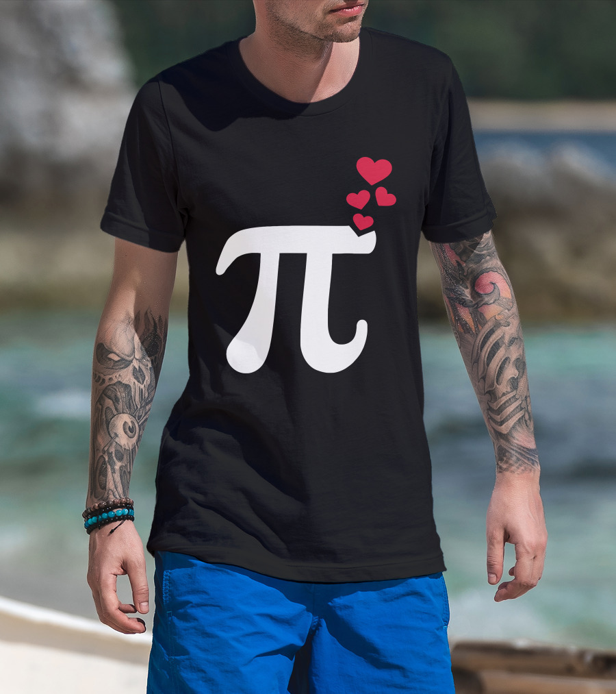 The Pi Symbol with Red Hearts T-shirt is designed for everyday wear and a consistent fit. Fabric is pre-shrunk ring-spun cotton with durable stitching. See the size chart below for exact measurements.