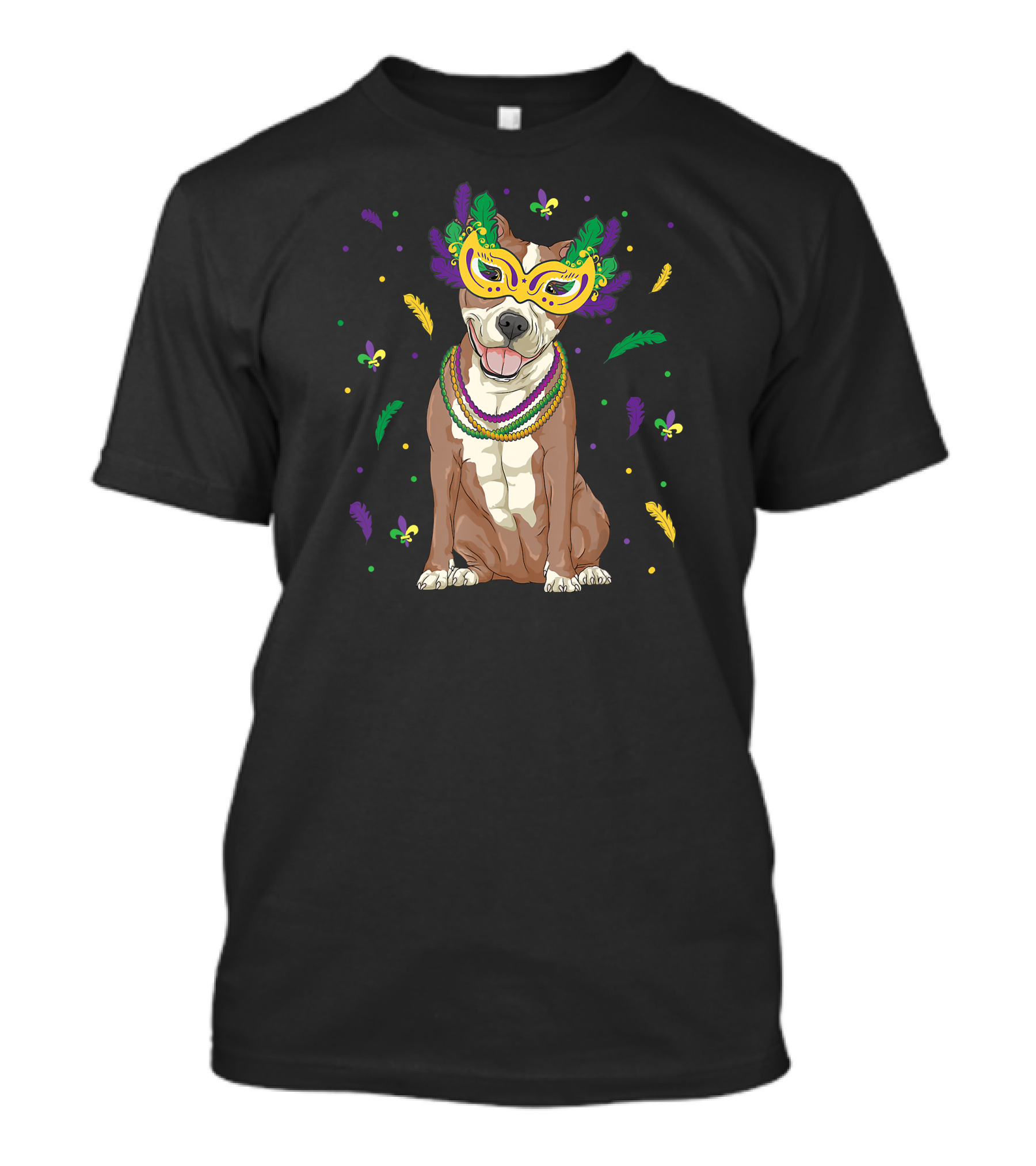 Mardi Gras Pitbull With Feathers And Beads Mask T-Shirt