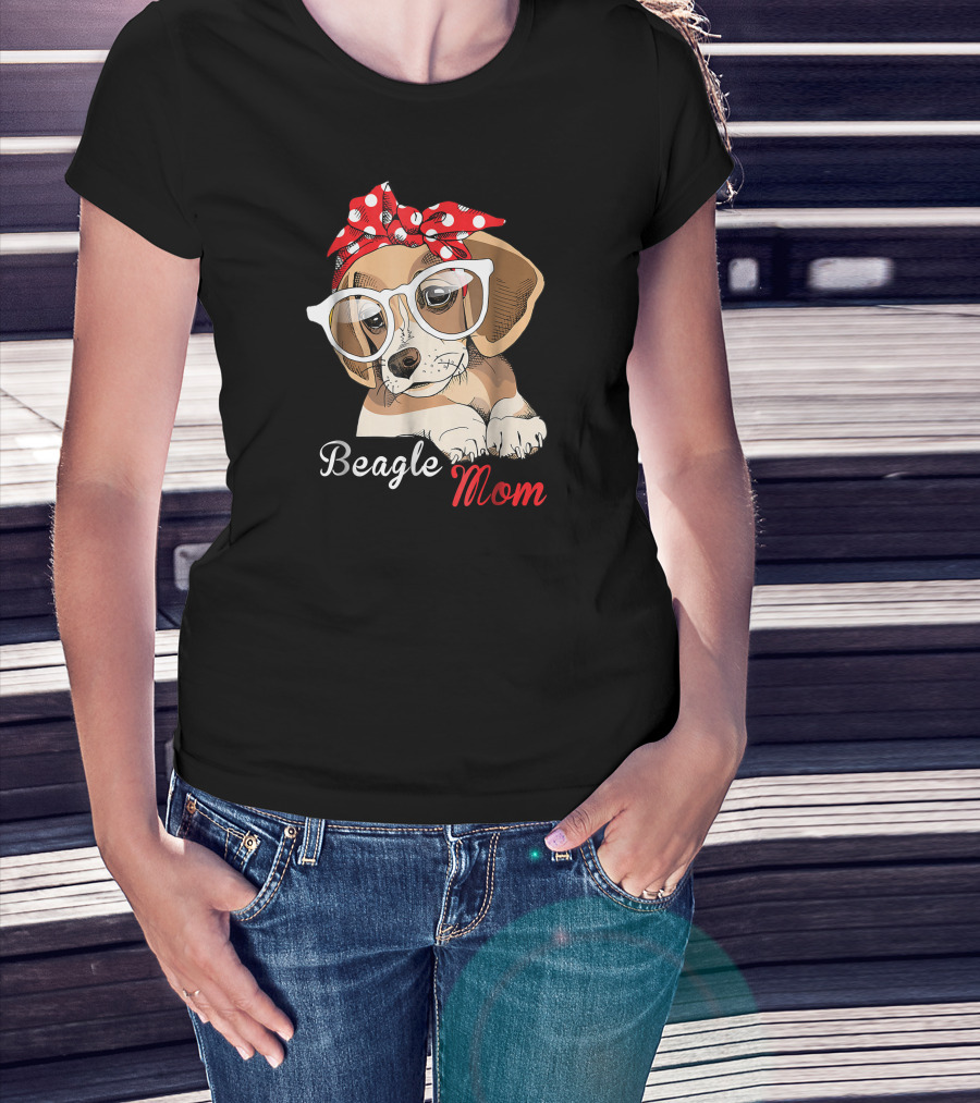 Beagle Mom Cute Beagle Dog With Glasses And Red Polka Dot Bow T-Shirt