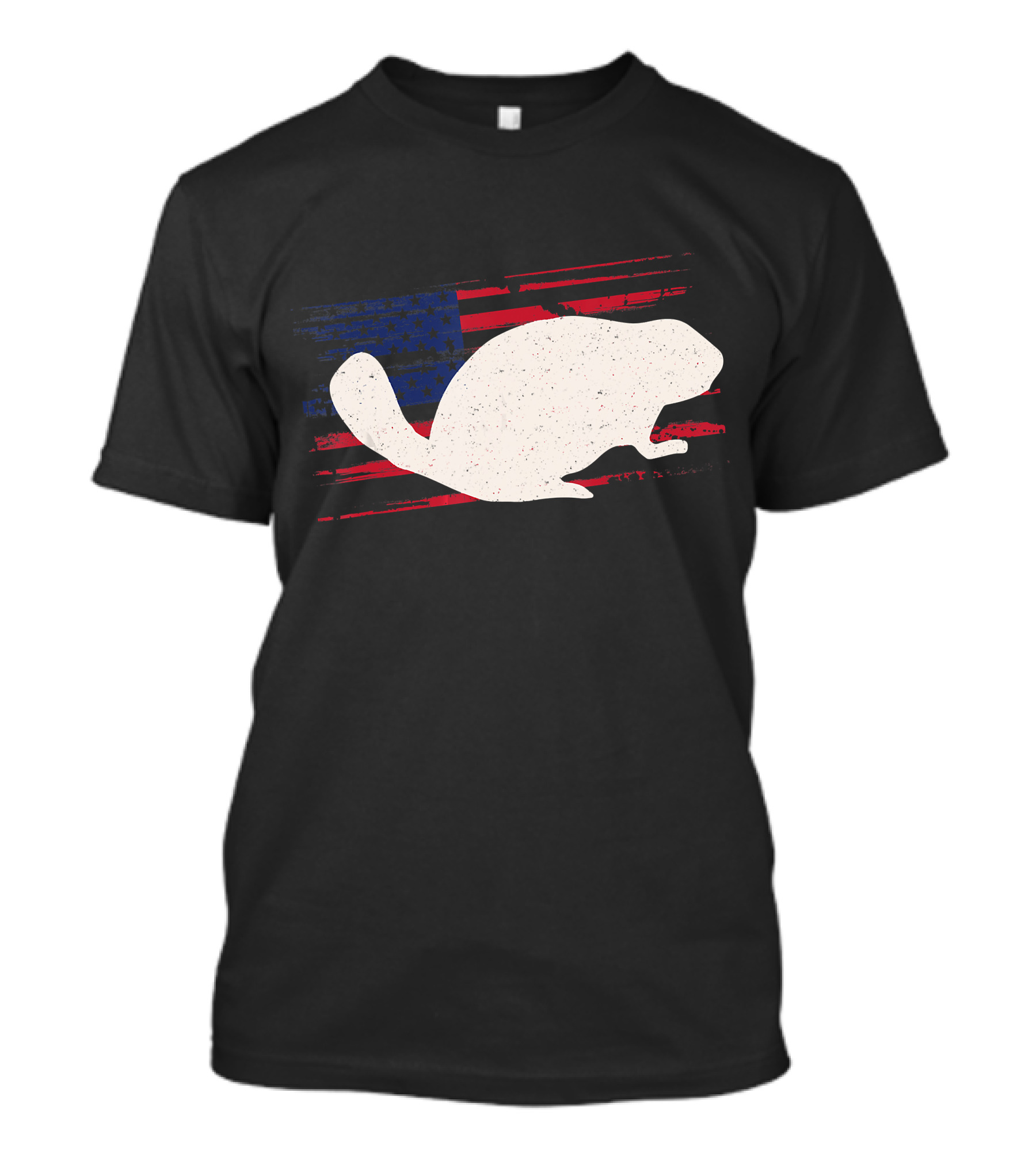 Beaver Silhouette On Distressed American Flag Rodent T-Shirt