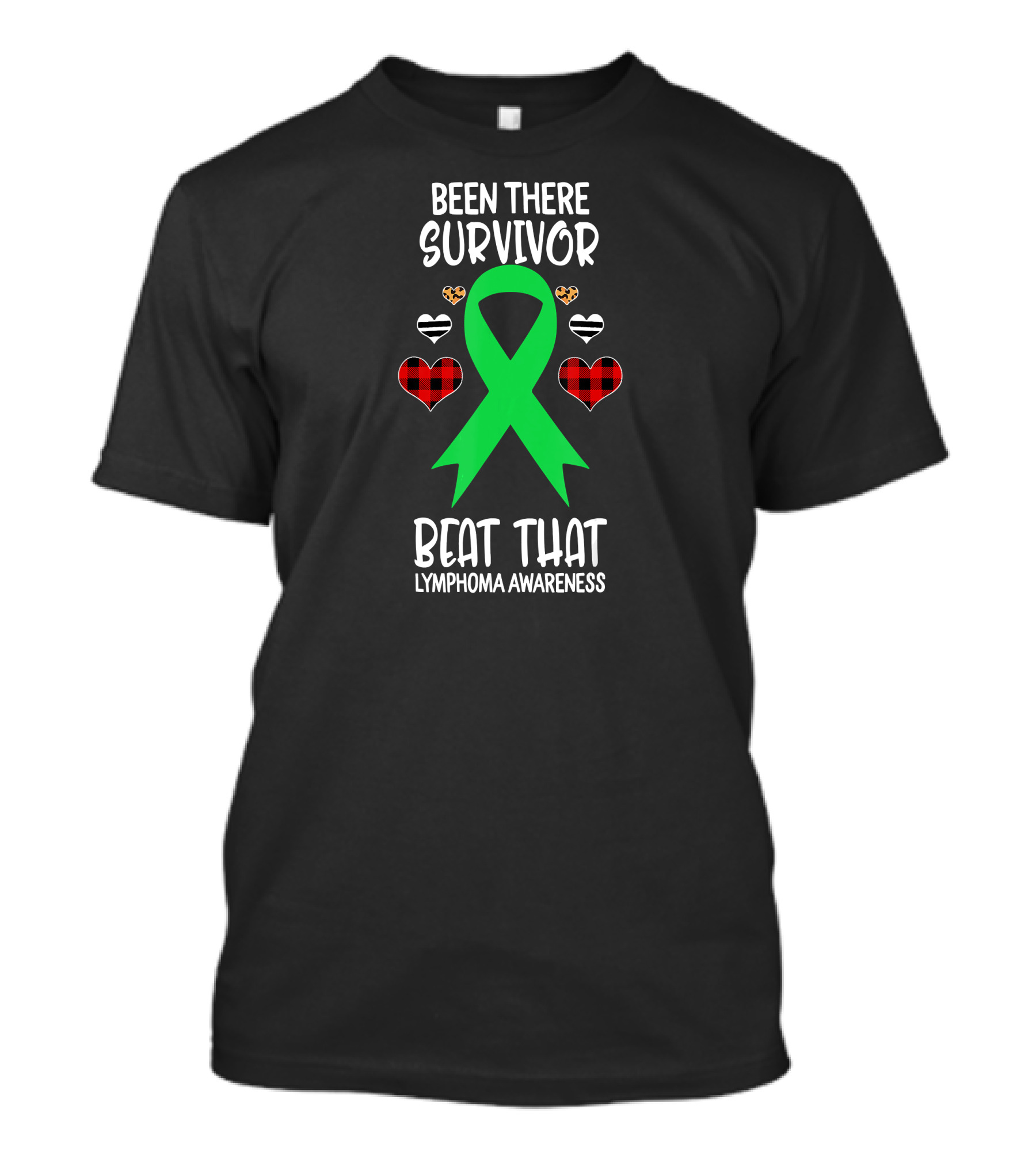 Been There Survivor Beat That Lymphoma Awareness Green Ribbon Hearts T-Shirt