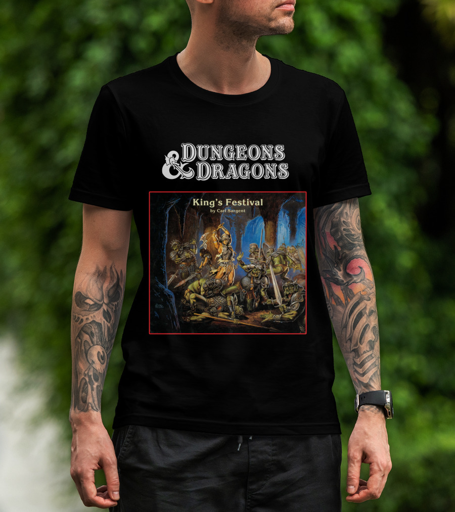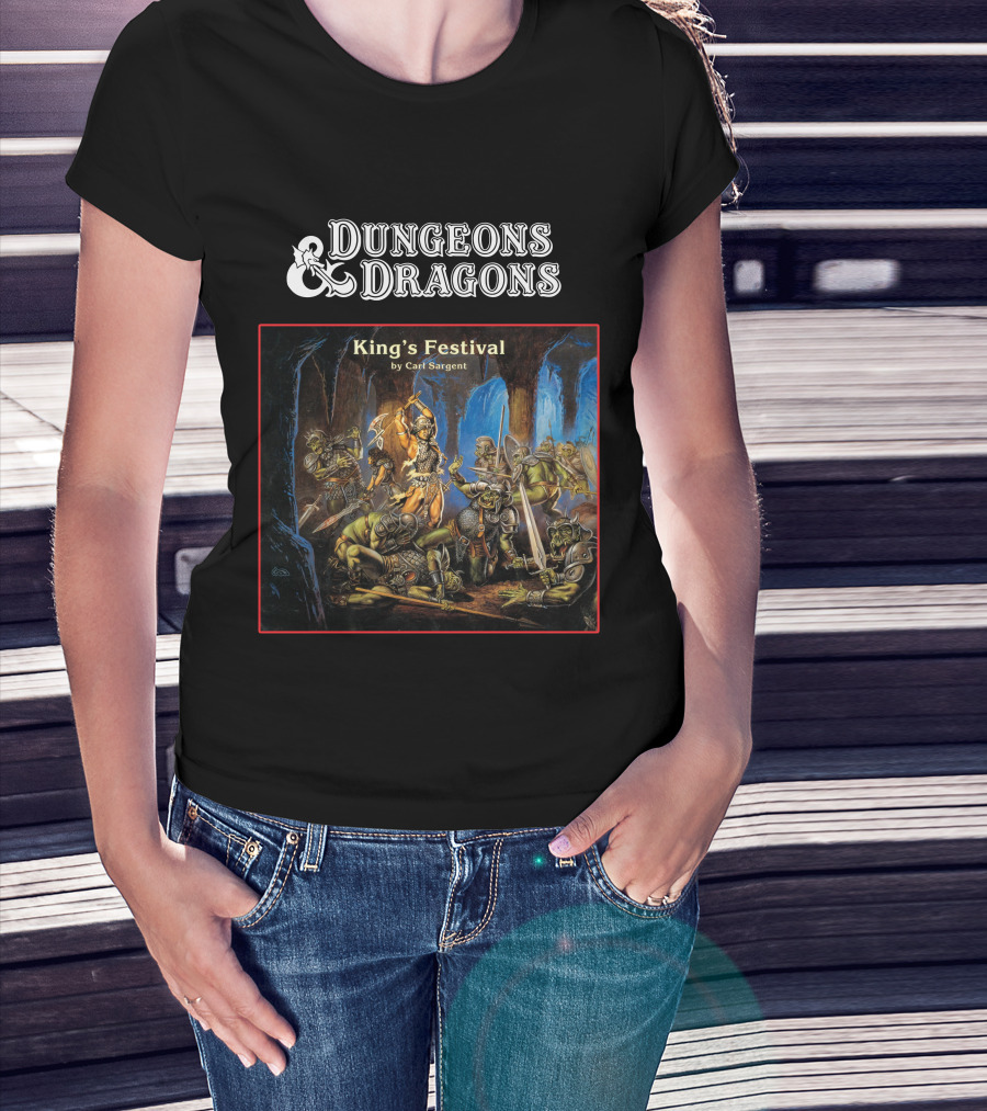 The Dungeons and Dragons King's Festival by Carl Sargent T-shirt is designed for everyday wear and a consistent fit. Fabric is pre-shrunk ring-spun cotton with durable stitching. See the size chart below for exact measurements.