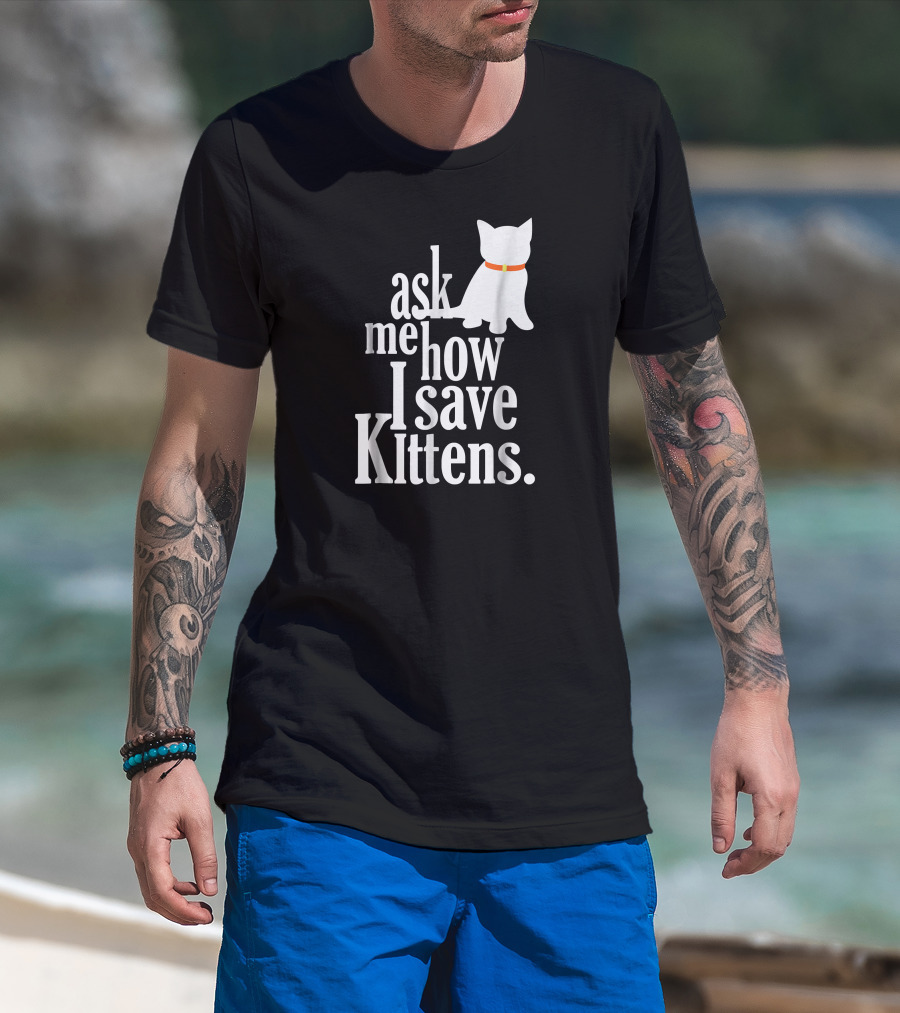 The Ask Me How I Save Kittens T-shirt is designed for everyday wear and a consistent fit. Fabric is pre-shrunk ring-spun cotton with durable stitching. See the size chart below for exact measurements.