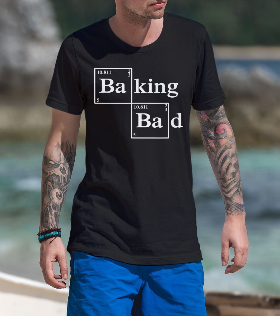 The Baking Bad Bake Love Periodic T-shirt is designed for everyday wear and a consistent fit. Fabric is pre-shrunk ring-spun cotton with durable stitching. See the size chart below for exact measurements.