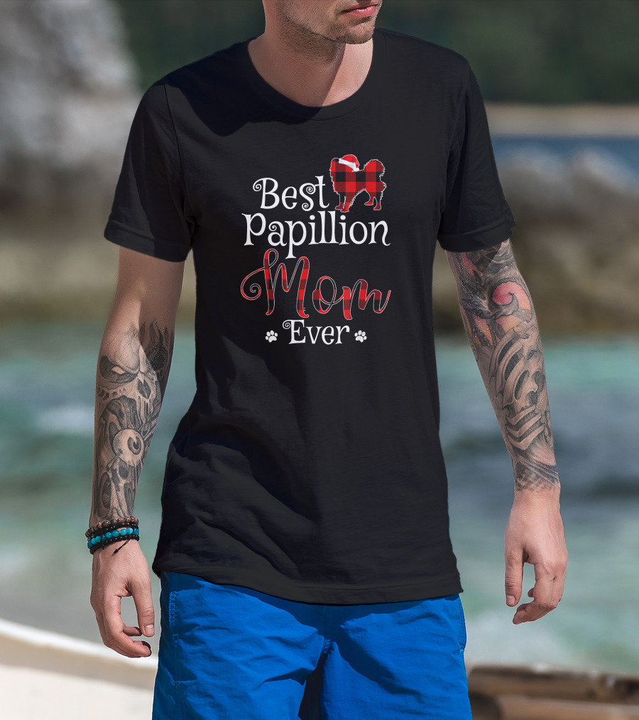 Best Papillion Mom Ever Santa Plaid Paws T-Shirt