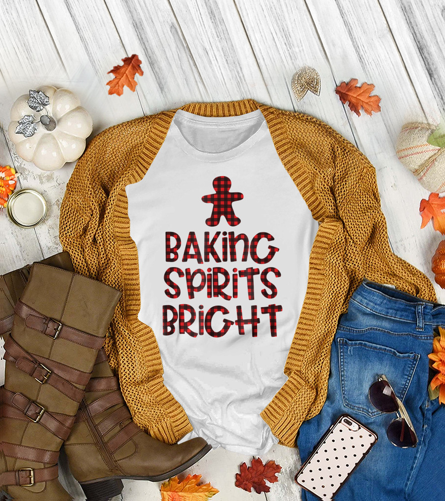 Baking Spirits Bright Buffalo Plaid Gingerbread Holiday T-Shirt