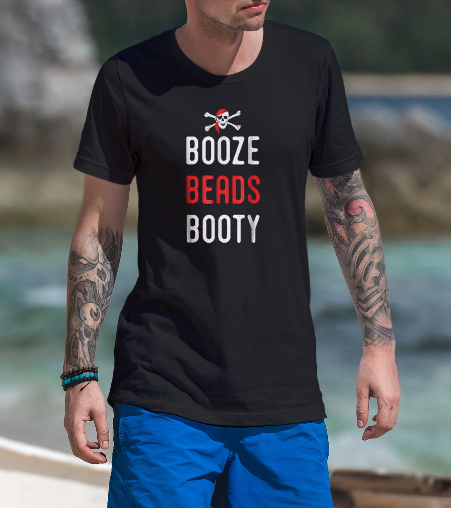 Booze Beads Booty Pirate Skull Crossbones T-Shirt