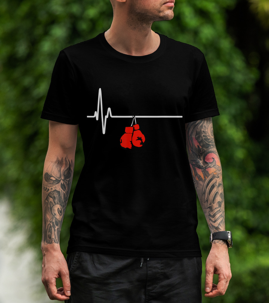 Boxing Gloves Heartbeat MMA Red Glove Pulse Line T-Shirt