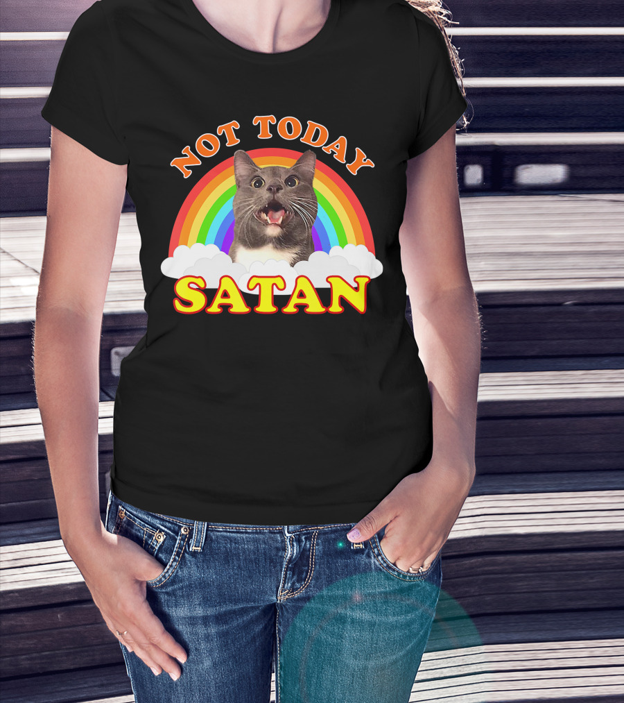 Not Today Satan Cat Rainbow Cloud Funny T-Shirt