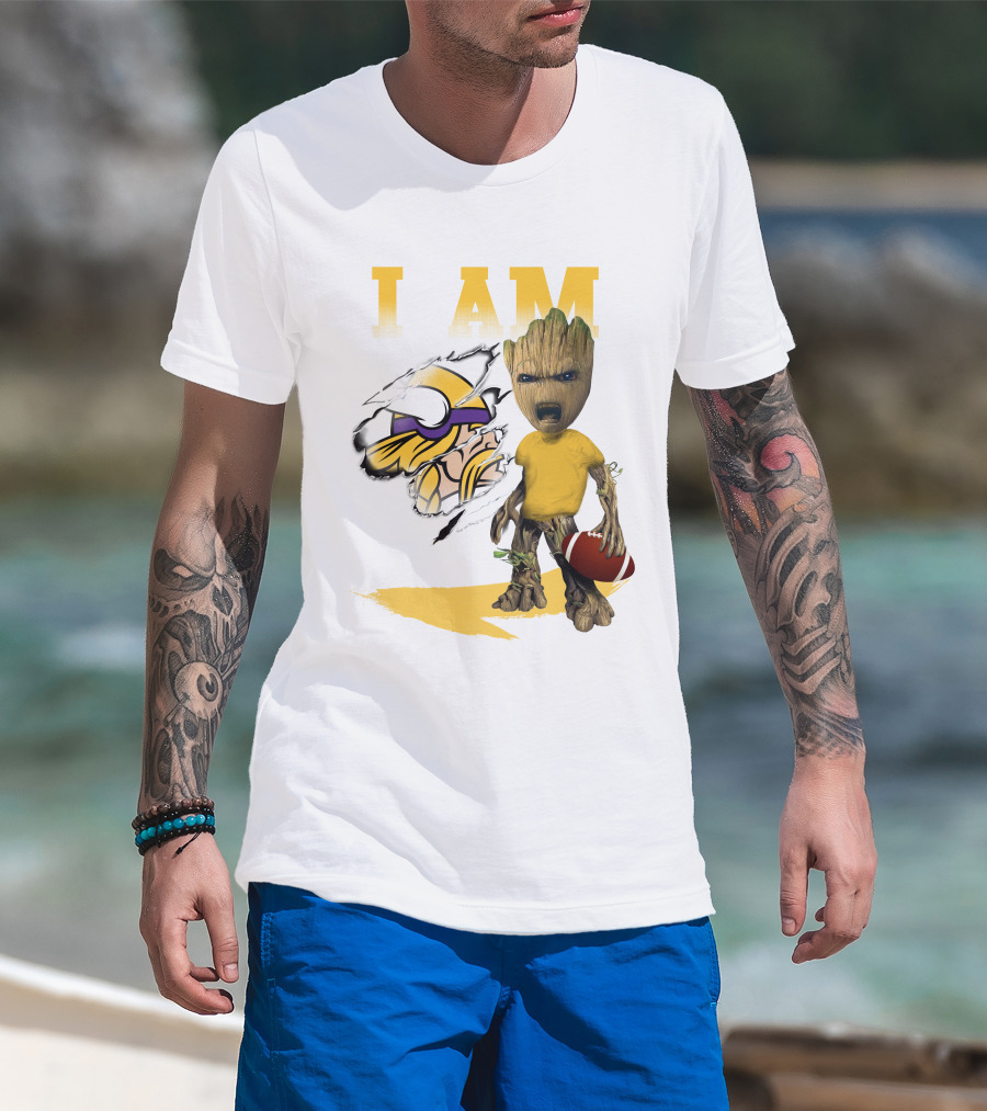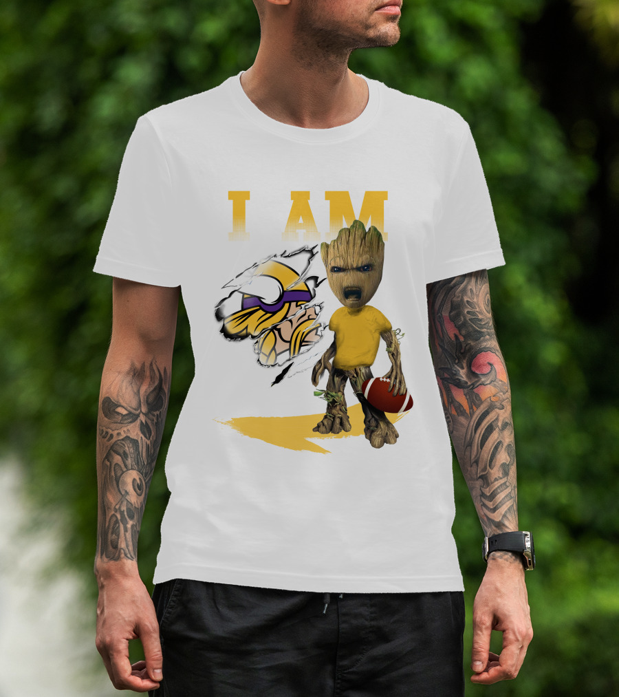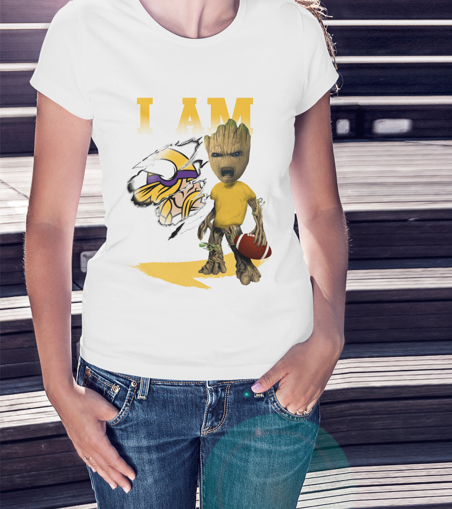 I AM Minnesota Vikings Baby Groot Football T-Shirt