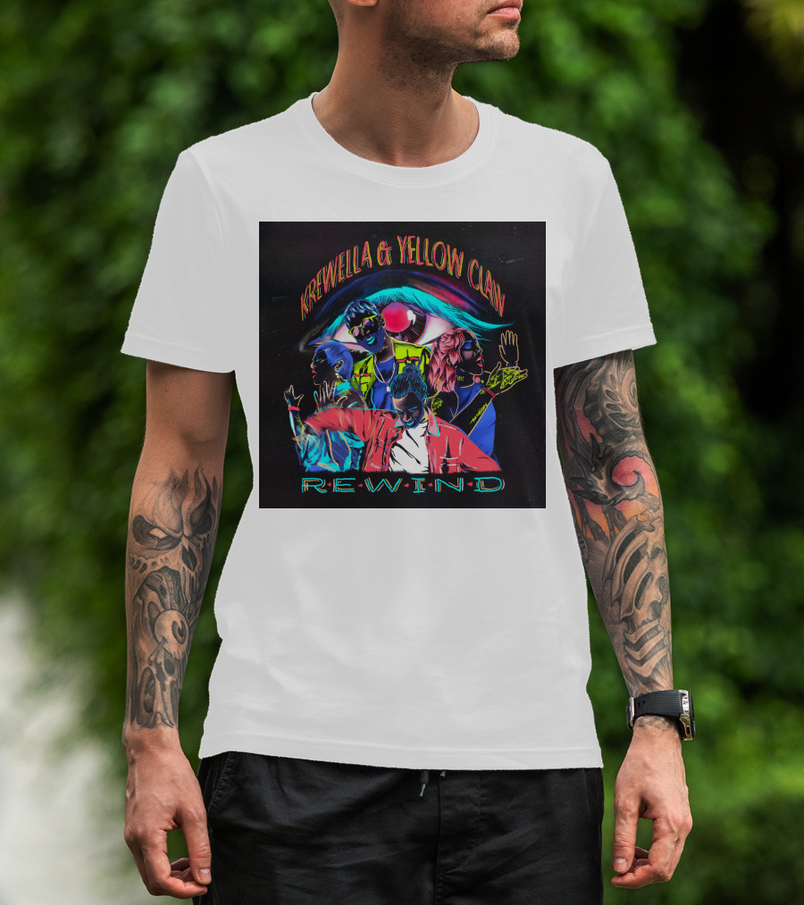 The Krewella and Yellow Claw Rewind Merchandise Featuring Neon Characters and Eye T-shirt is designed for everyday wear and a consistent fit. Fabric is pre-shrunk ring-spun cotton with durable stitching. See the size chart below for exact measurements.