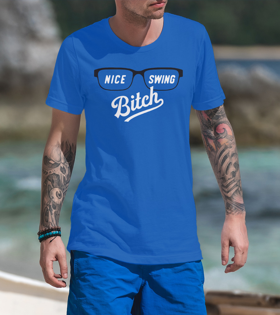 Nice Swing Bitch Baseball Movie Quote Glasses On Blue T-Shirt
