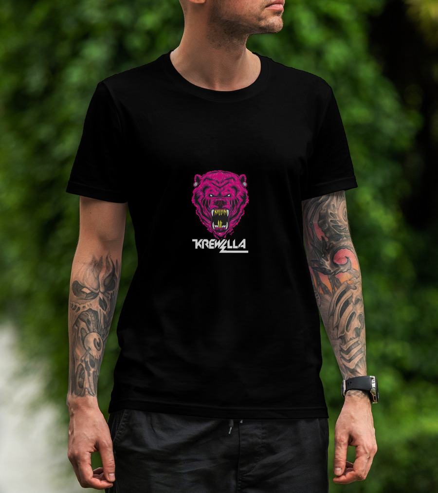 The Krewella Fierce Neon Bear Head T-shirt is designed for everyday wear and a consistent fit. Fabric is pre-shrunk ring-spun cotton with durable stitching. See the size chart below for exact measurements.