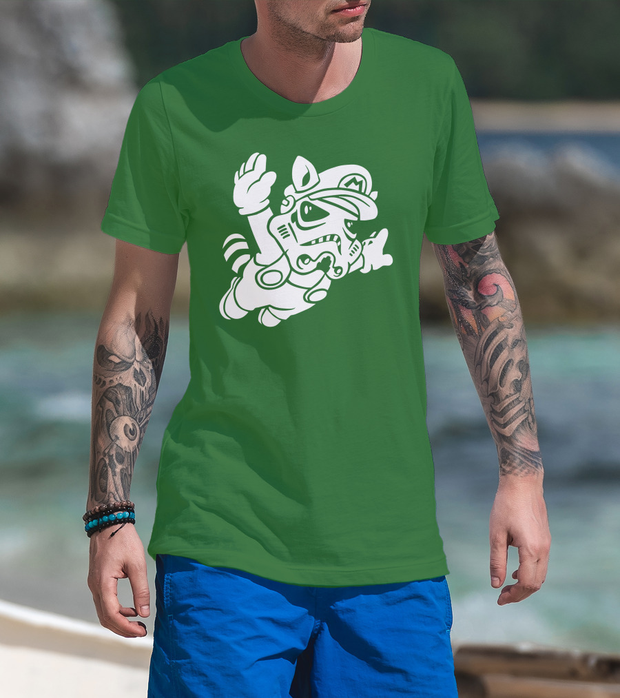 Tanooki Trooper Mashup M Helmet Raccoon Tail T-Shirt