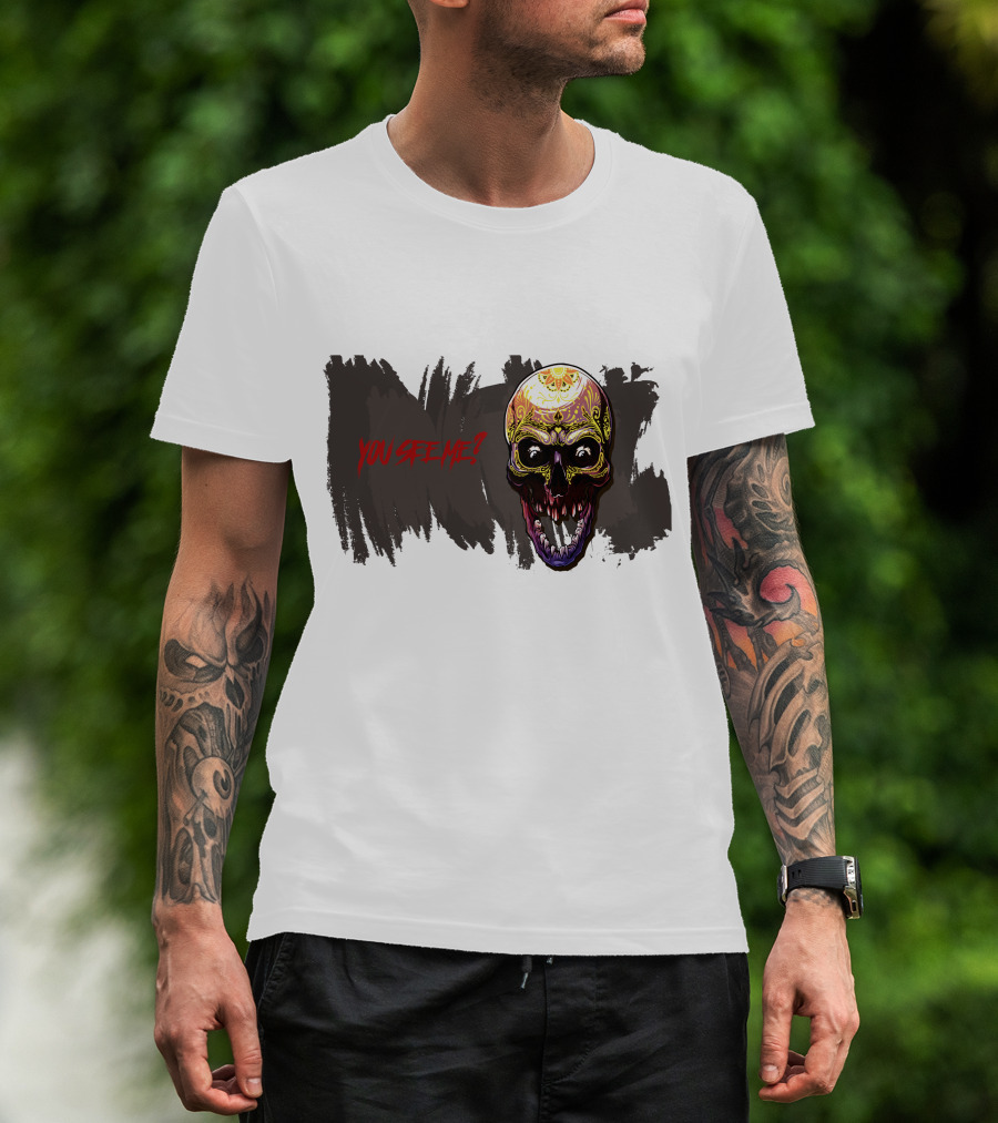 The Skull Yellow Scary Horror You See Me T-shirt is designed for everyday wear and a consistent fit. Fabric is pre-shrunk ring-spun cotton with durable stitching. See the size chart below for exact measurements.