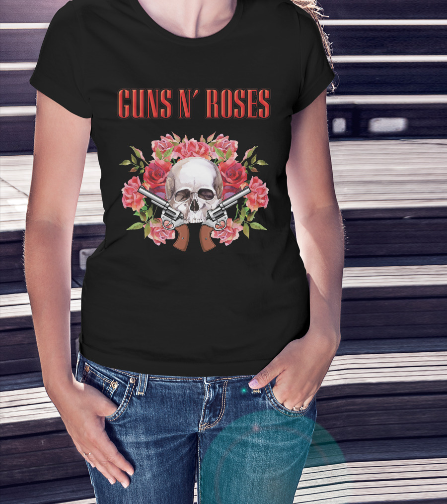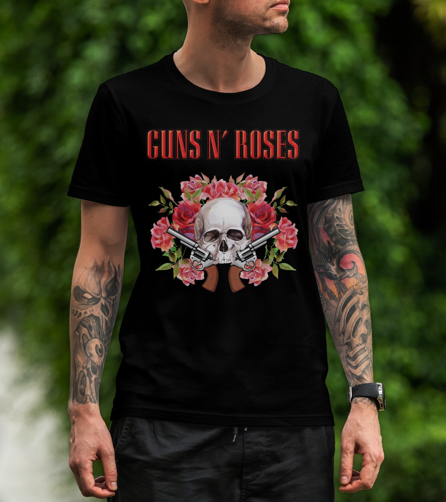 Guns N' Roses Greatest Hits Live On Air Skull Roses Pistols T-Shirt