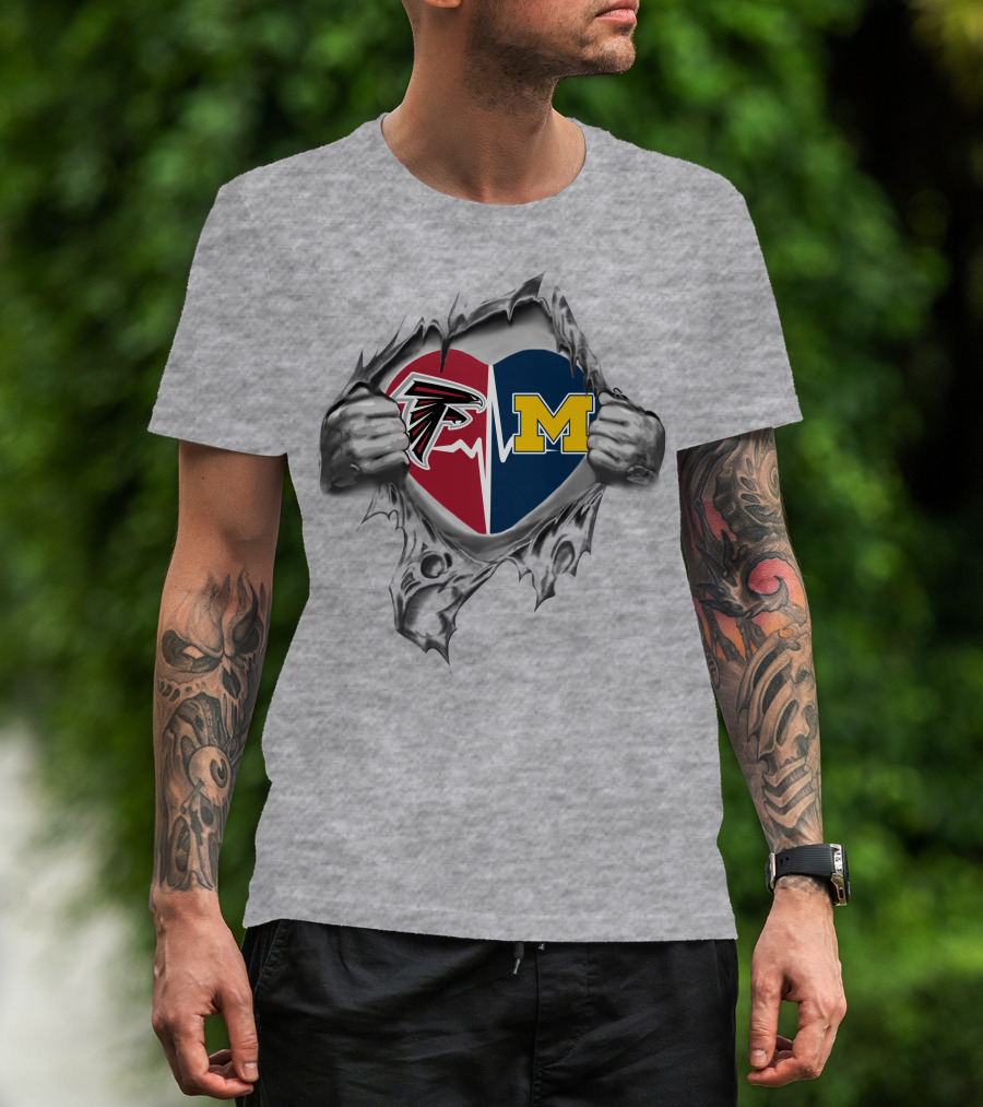 Michigan Wolverines Atlanta Falcons Heartbeat Split T-Shirt