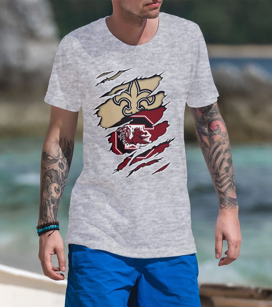 Saints Gamecocks Logo Crossover With Fleur-de-Lis And Fighting Rooster T-Shirt