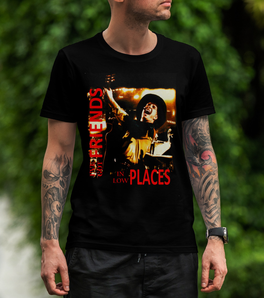 The 1996 Garth Brooks I've Got Friends in Low Places T-shirt is designed for everyday wear and a consistent fit. Fabric is pre-shrunk ring-spun cotton with durable stitching. See the size chart below for exact measurements.
