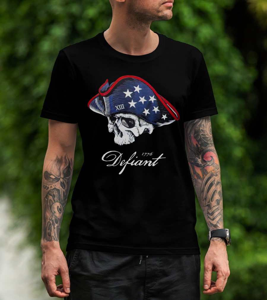 Defiant 1776 XIII Skull With Patriot Tricorn Hat Men's Fashion 3XL T-Shirt