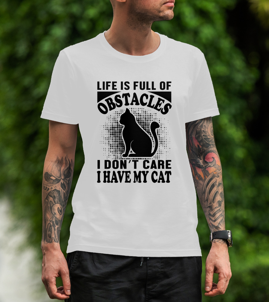 Life Is Full Of Obstacles I Don't Care I Have My Cat Retro T-Shirt