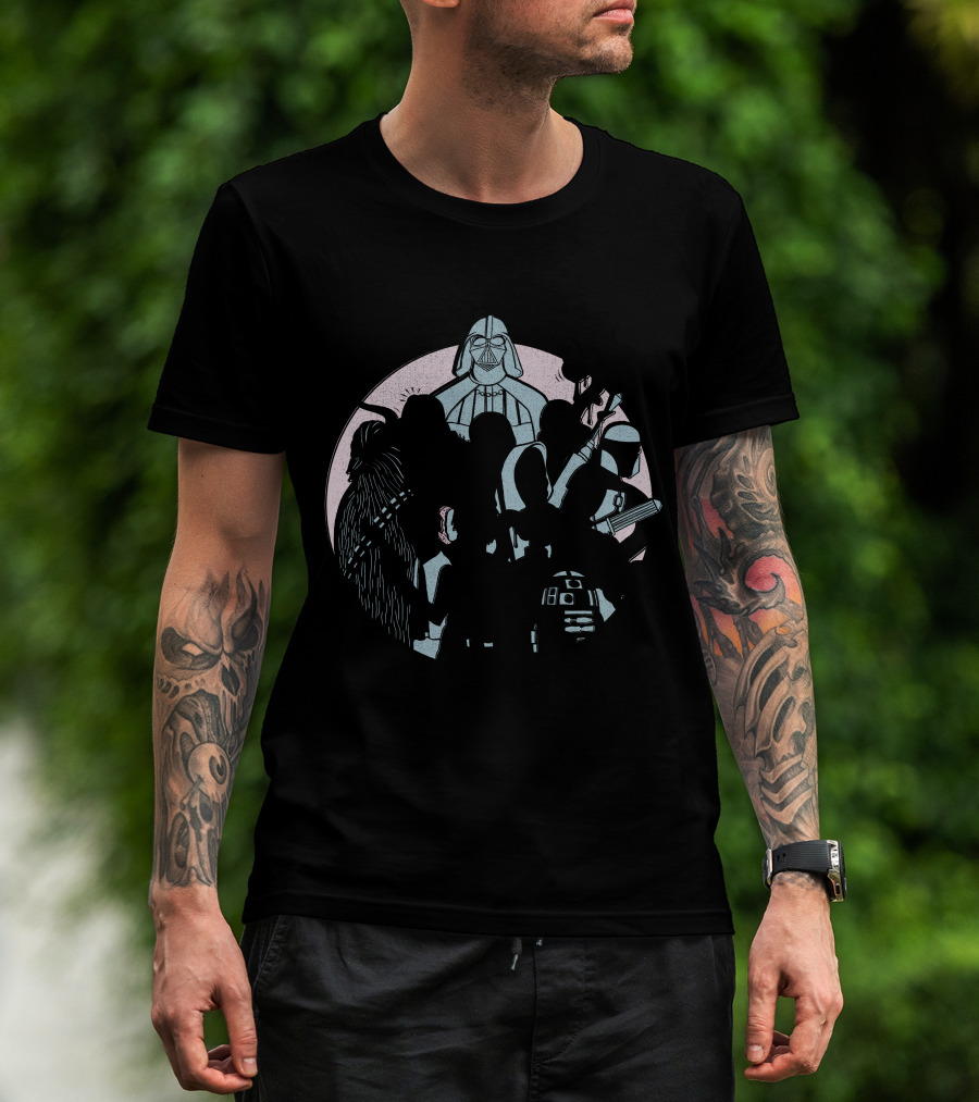 Star Wars Heroes And Villains Pastel Doodle Vader Stormtrooper Chewbacca Mandalorian R2-D2 T-Shirt