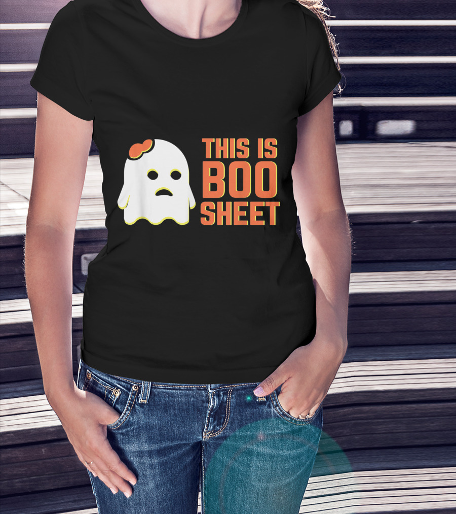 Halloween Ghost This Is Boo Sheet Graphic With Cute Bow Accent T-Shirt