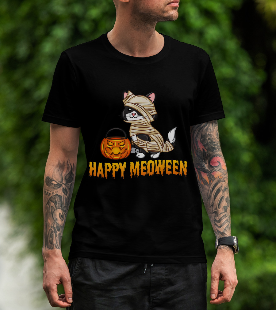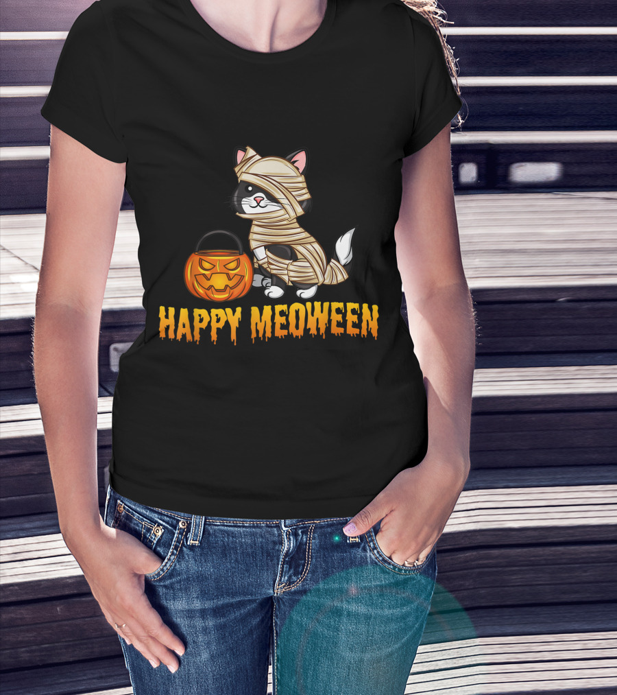 Happy Meoween Cute Cat Mummy With Pumpkin T-Shirt