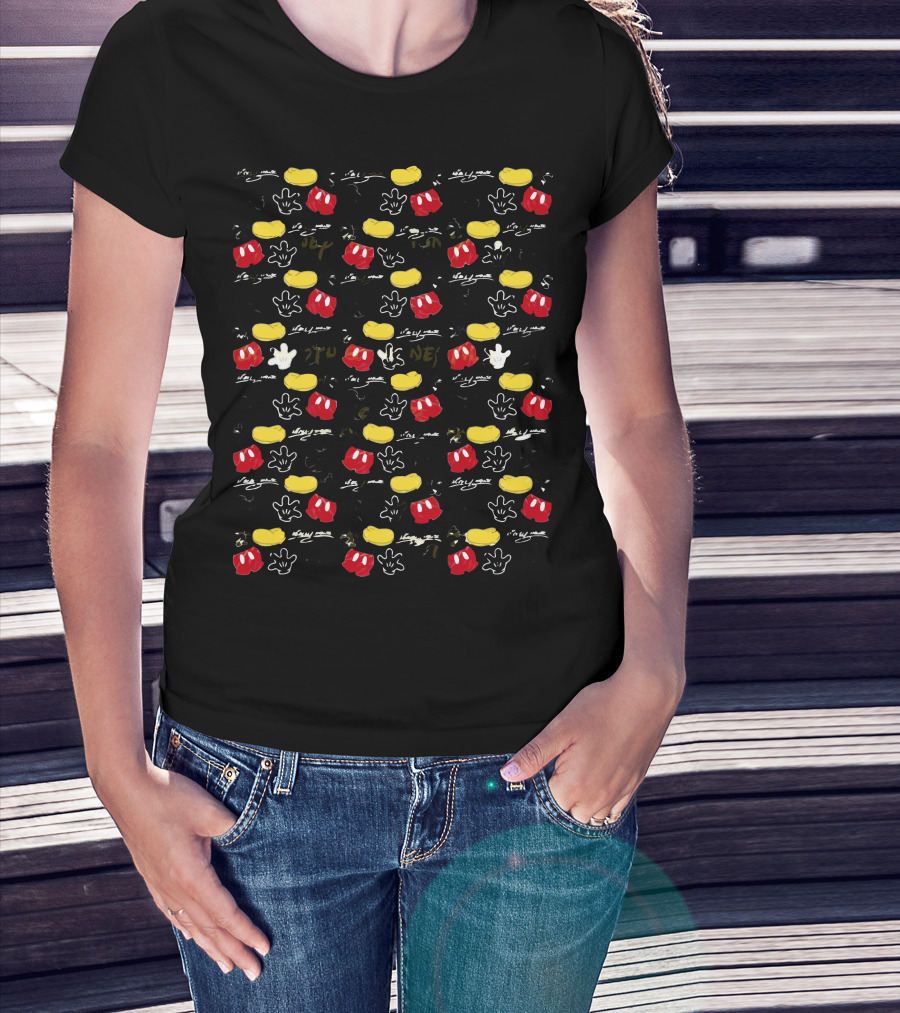The Mickey Mouse Iconic Logos Red Yellow Black T-shirt is designed for everyday wear and a consistent fit. Fabric is pre-shrunk ring-spun cotton with durable stitching. See the size chart below for exact measurements.