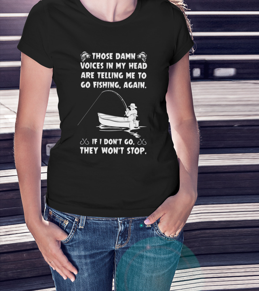Those Damn Voices In My Head Are Telling Me To Go Fishing Again If I Don't Go They Won't Stop T-Shirt