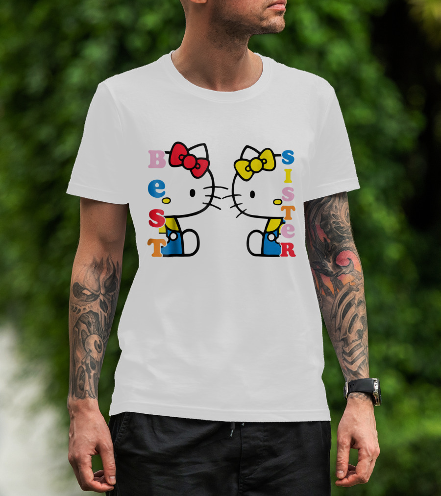 The Hello Kitty Mimmy Best Sister Black Bow T-shirt is designed for everyday wear and a consistent fit. Fabric is pre-shrunk ring-spun cotton with durable stitching. See the size chart below for exact measurements.