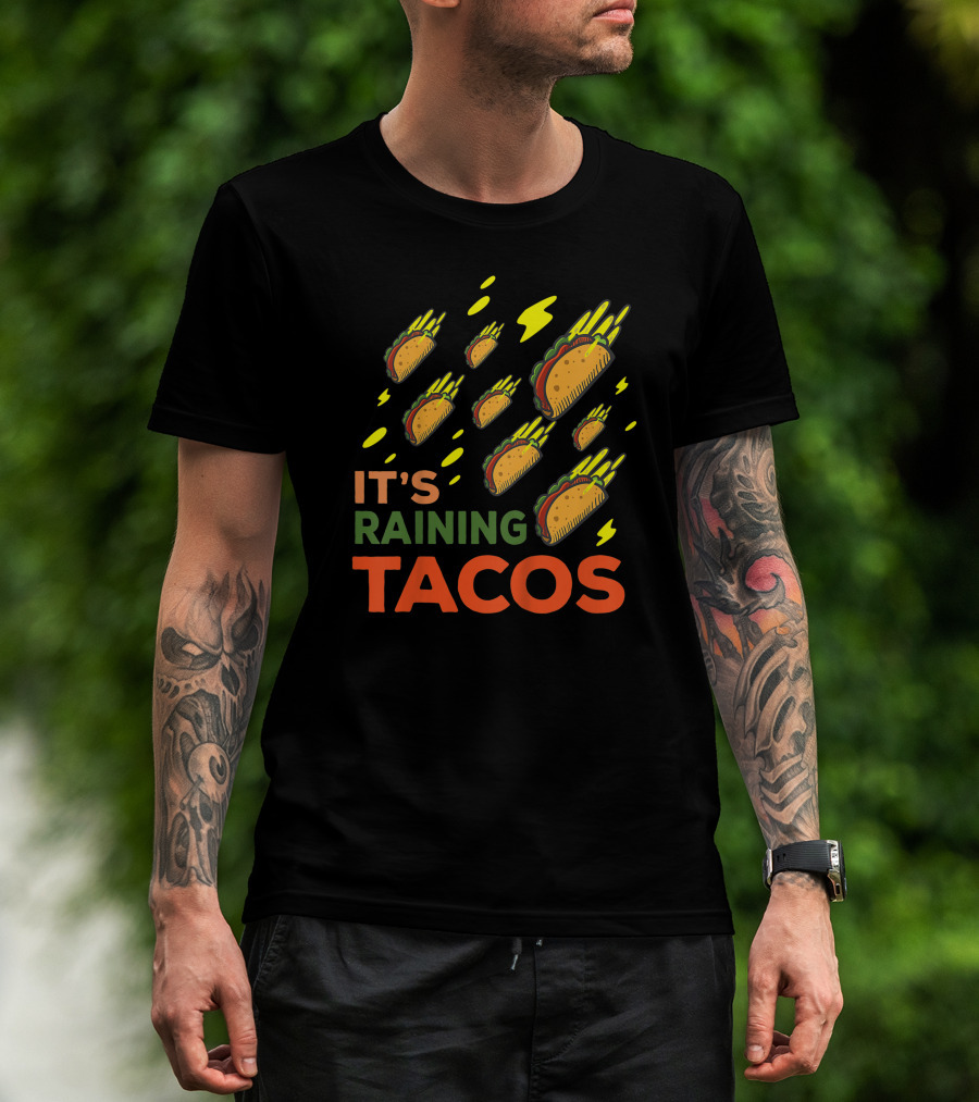 It's Raining Tacos Surreal Fun Food Drops With Lightning And Colorful Accents T-Shirt