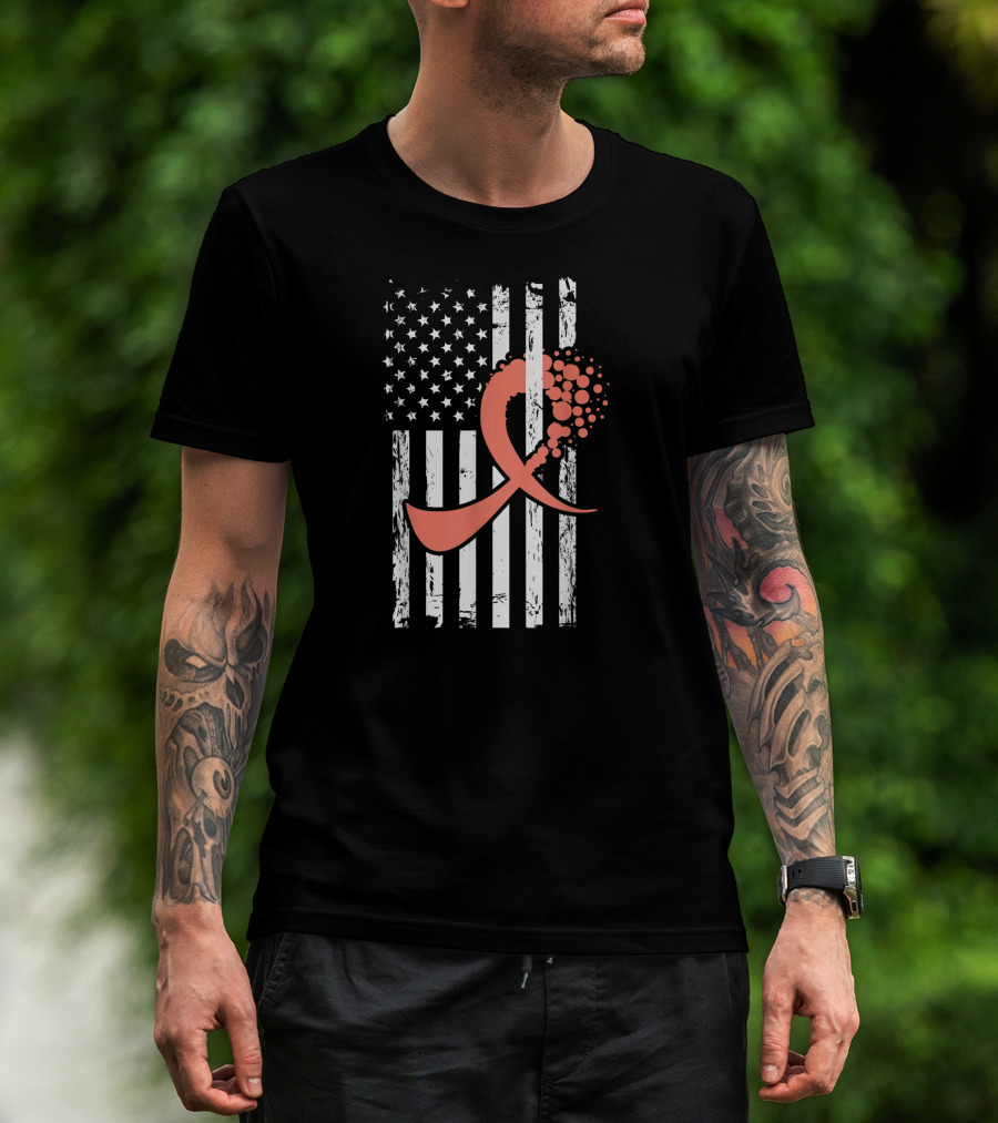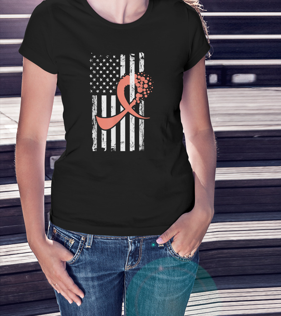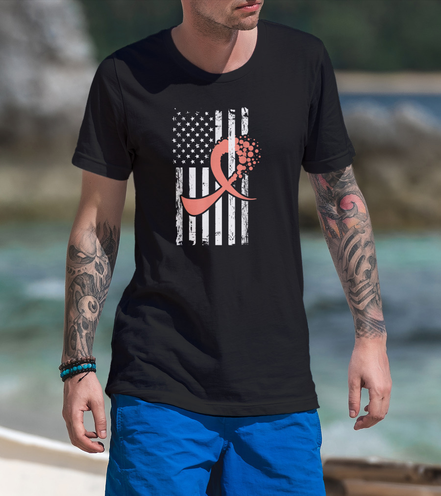 American Flag With Uterine Cancer Awareness T-Shirt