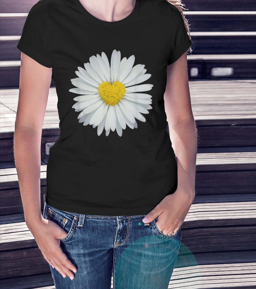 White And Yellow Heart Daisy Blossom T-Shirt