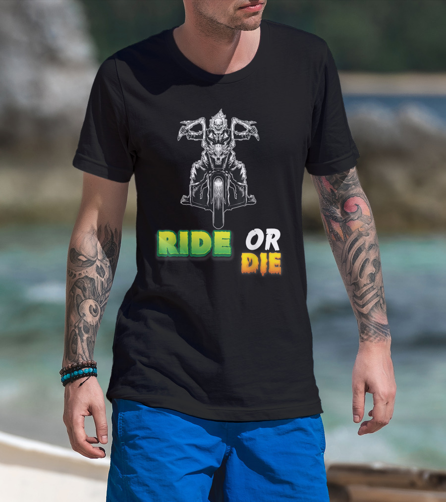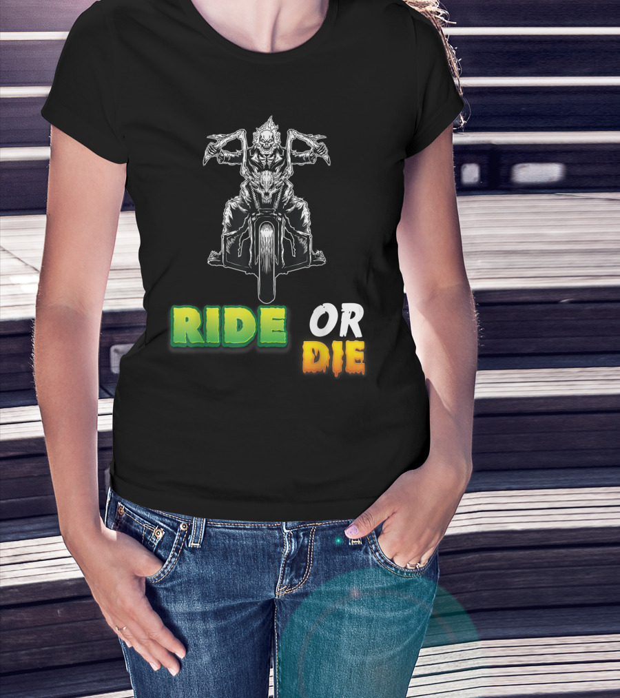 Ride Or Die Skeleton Riding Motorcycle Biker T-Shirt