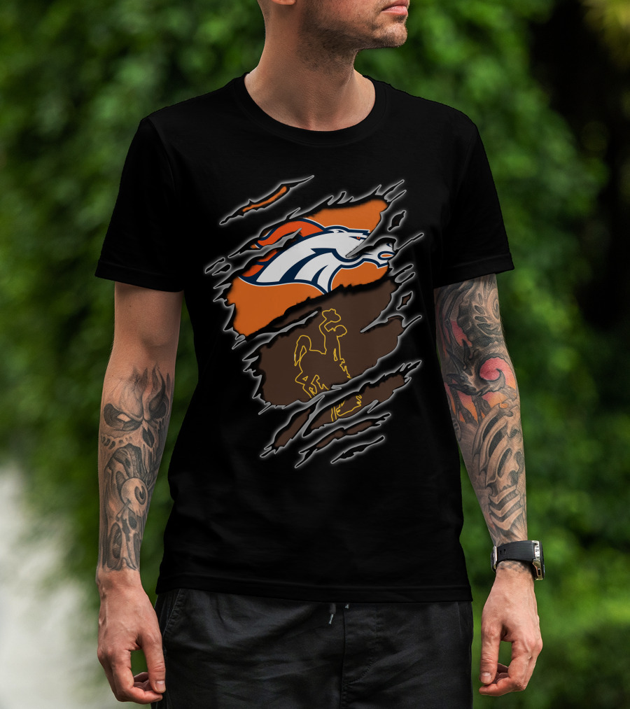 Broncos Wyoming Horse Logo With Cowboy And Horse Elements T-Shirt