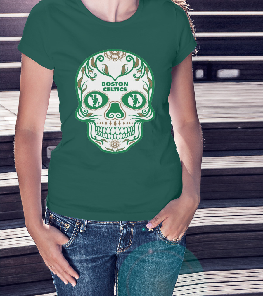 Boston Celtics Skull With Celtic Symbols And Basketball Mascot T-Shirt