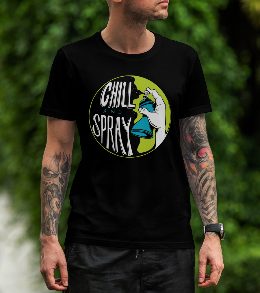 CHILL AND SPRAY Hand Holding Blue Can T-Shirt