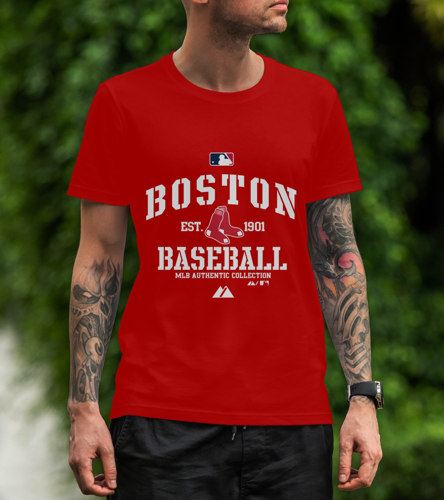 The Boston Established 1901 MLB Authentic Collection Baseball T-shirt is designed for everyday wear and a consistent fit. Fabric is pre-shrunk ring-spun cotton with durable stitching. See the size chart below for exact measurements.