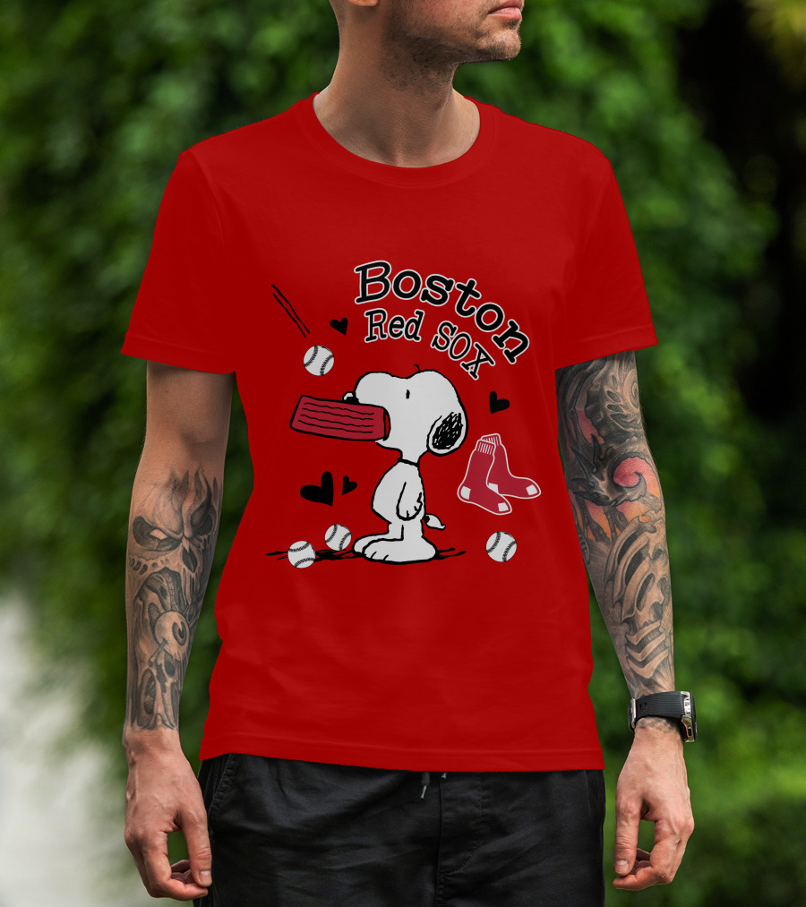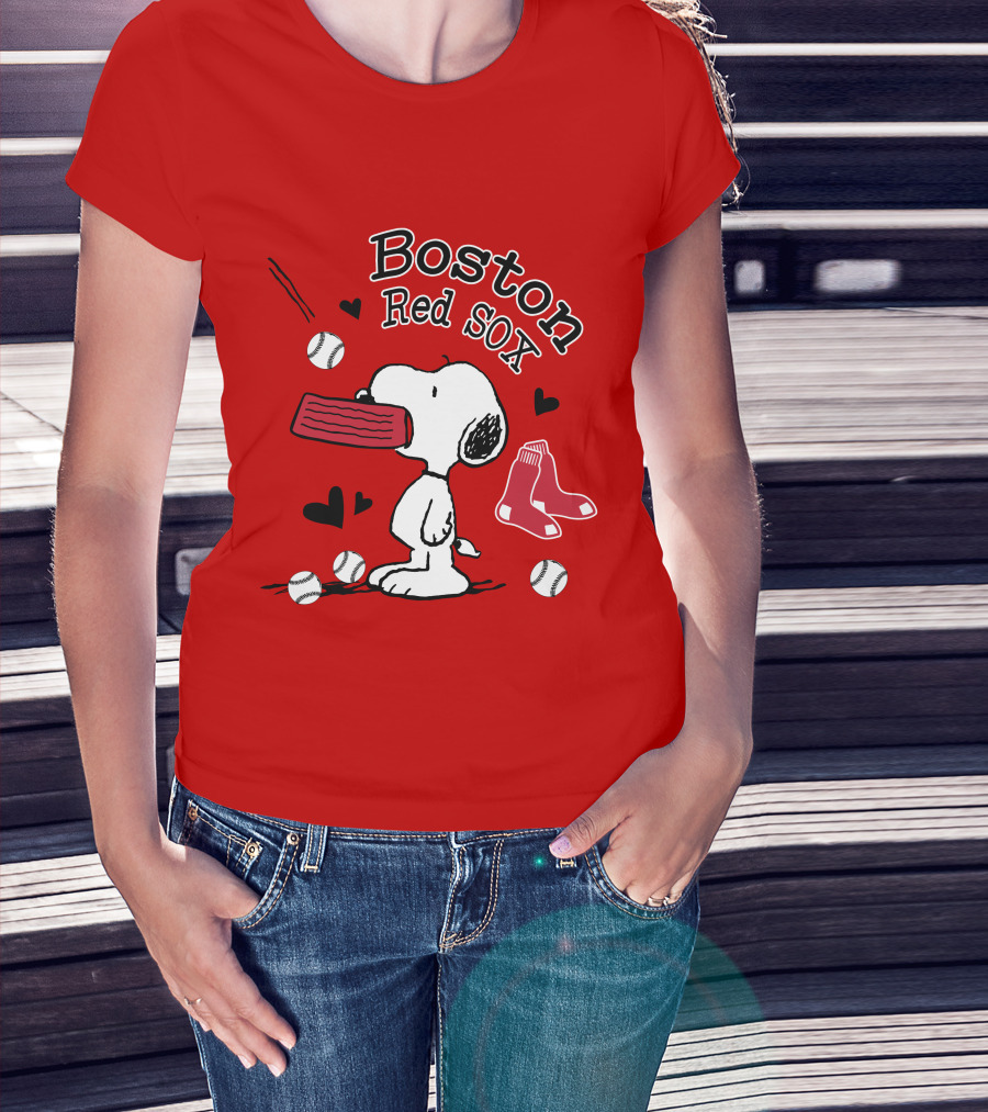 Boston Red Sox Snoopy Baseball Hearts T-Shirt