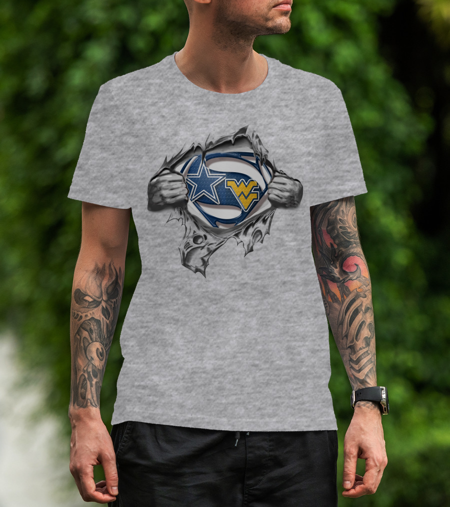 Dallas Cowboys West Virginia Mountaineers Superman Logo Rip T-Shirt