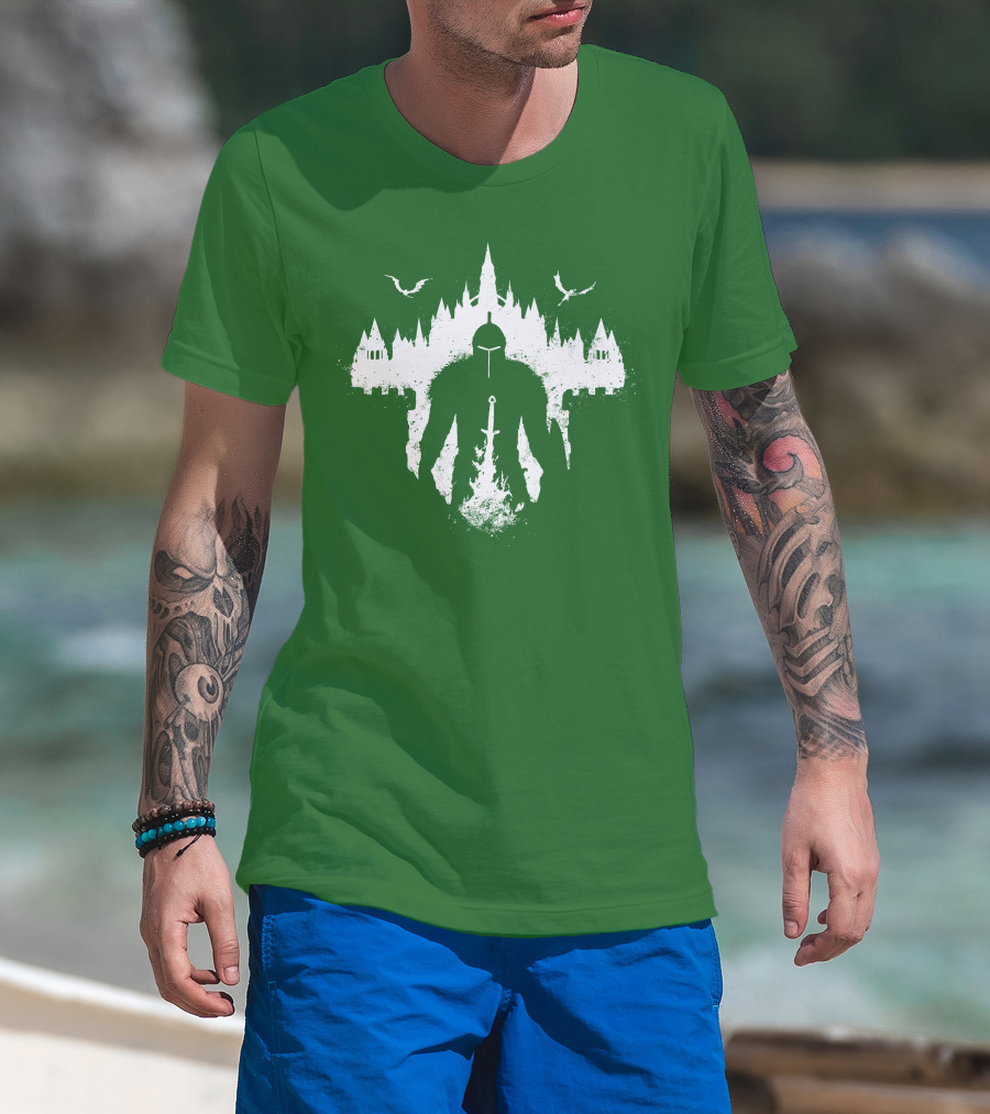 The Warrior Soul Medieval Knight Silhouette with Sword and Castle in Background T-shirt is designed for everyday wear and a consistent fit. Fabric is pre-shrunk ring-spun cotton with durable stitching. See the size chart below for exact measurements.