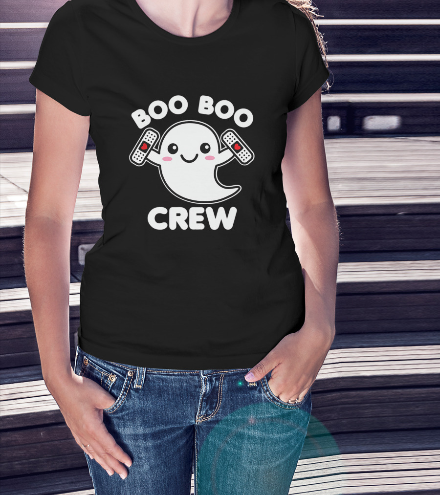 Boo Boo Crew Nurse Ghost Funny Kawaii Bandage Heart T-Shirt