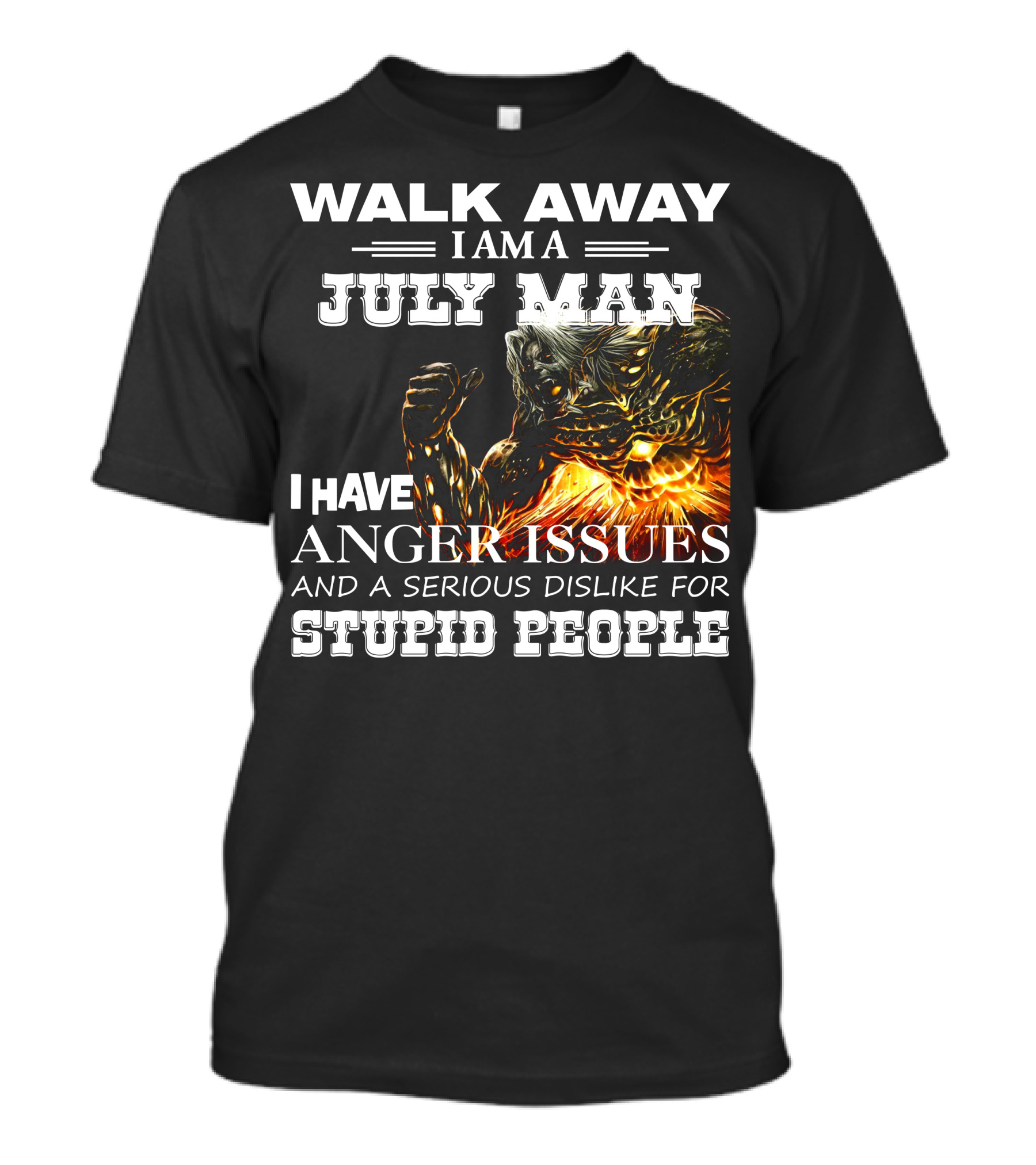 The Walk Away I Am A July Man I Have Anger Issues And A Serious Dislike For Stupid People Demon Warrior T-shirt is designed for everyday wear and a consistent fit. Fabric is pre-shrunk ring-spun cotton with durable stitching. See the size chart below for exact measurements.