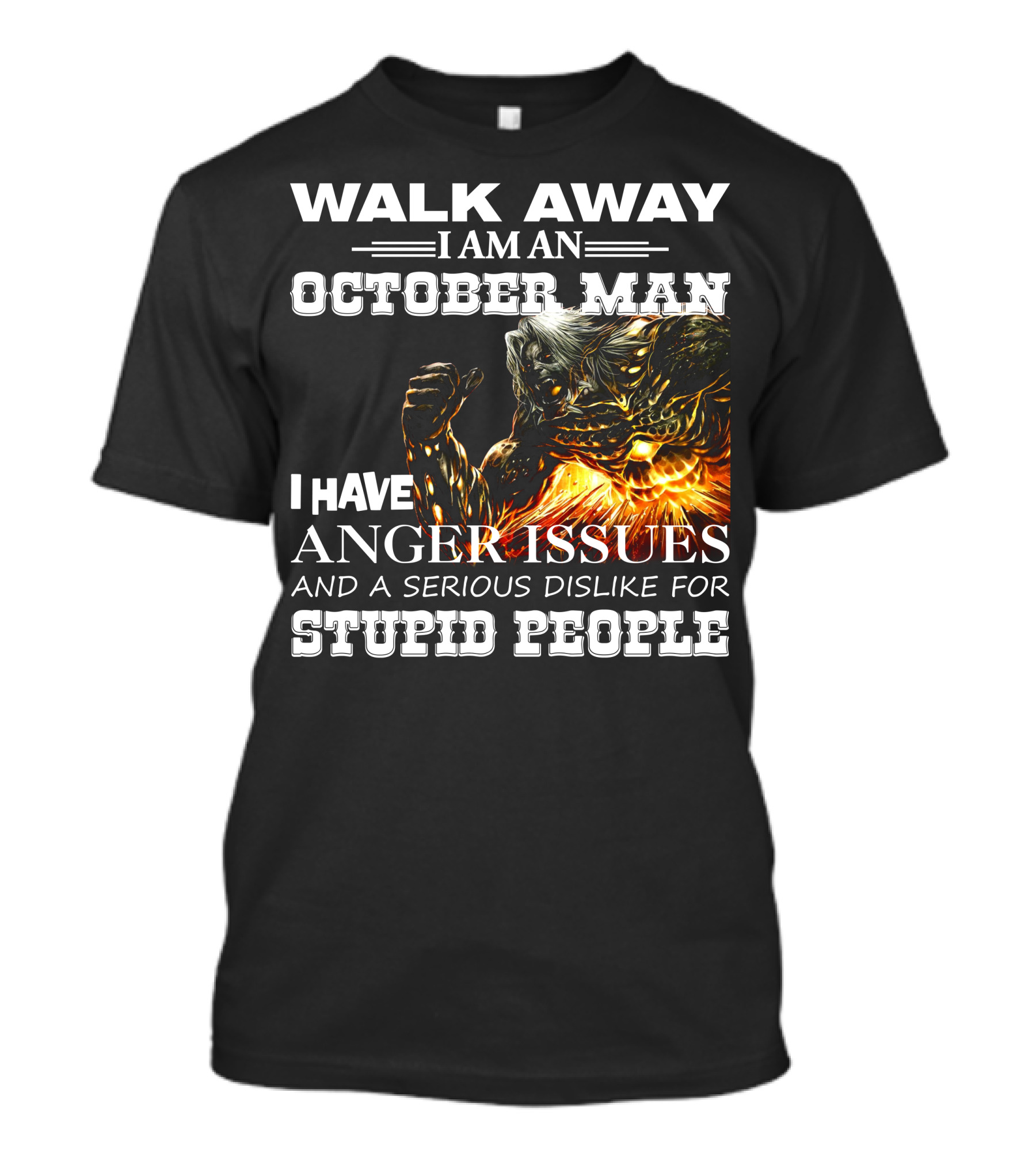 The Walk Away I Am An October Man I Have Anger Issues and a Serious Dislike for Stupid People Demon Warrior T-shirt is designed for everyday wear and a consistent fit. Fabric is pre-shrunk ring-spun cotton with durable stitching. See the size chart below for exact measurements.