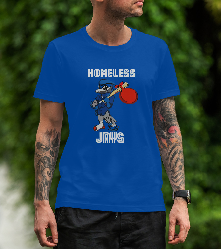 HOMELESS JAYS BLUE CHARACTER HOLDING BAG T-Shirt