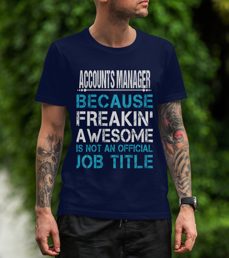 The ACCOUNTS MANAGER BECAUSE FREAKIN' AWESOME IS NOT AN OFFICIAL JOB TITLE T-shirt is designed for everyday wear and a consistent fit. Fabric is pre-shrunk ring-spun cotton with durable stitching. See the size chart below for exact measurements.