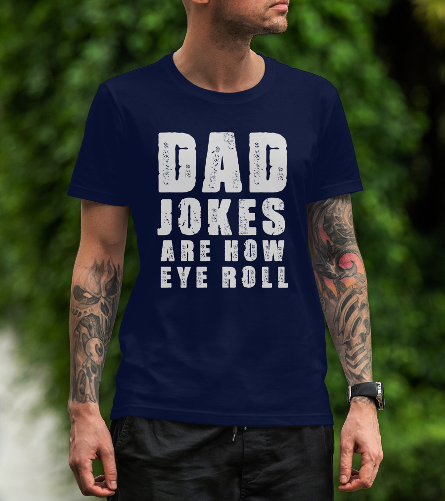 The Dad Jokes Are How Eye Roll Retro Humor T-shirt is designed for everyday wear and a consistent fit. Fabric is pre-shrunk ring-spun cotton with durable stitching. See the size chart below for exact measurements.